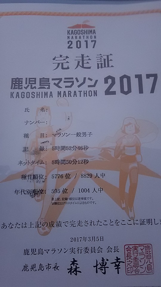 3月5日(日)に、第2回の鹿児島マラソンに参加し、どうにか完走しました。