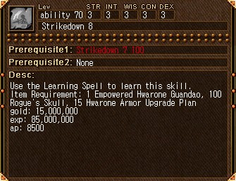 上位スキルの習得については、気が向いたらやる予定。Strikedownとか、上位になるとさらに1距離伸ばせて攻撃できたらいいのに。