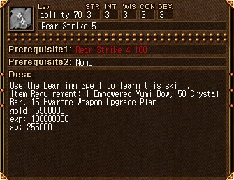 また、ArcherスキルのRear Strike 5~6は、バグの関係で習得不可能。