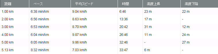 (本日の5kmランニング成績表)