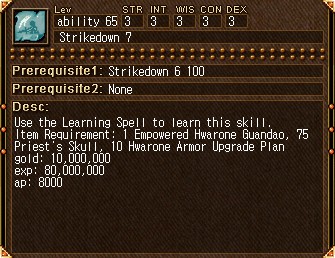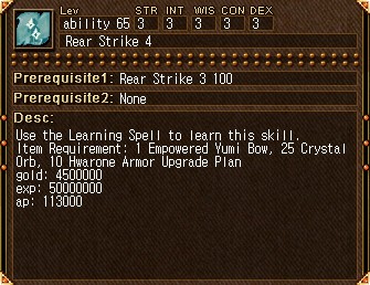 また、ArcherスキルのRear Strike 5~6は、バグの関係で習得不可能。